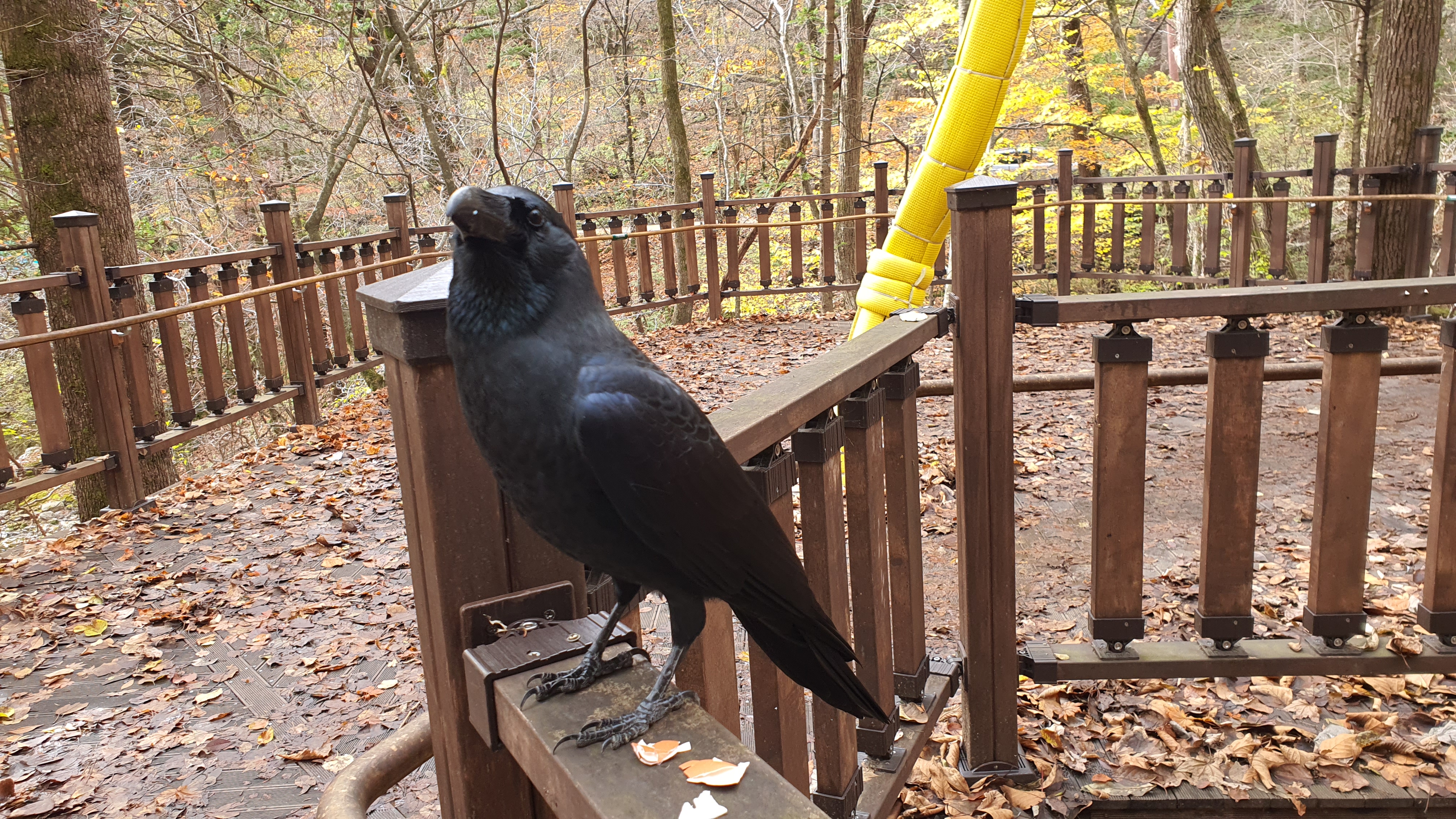 냄새를 맞고 달려든 까마귀가 무서워하지도 않고 '깍'깍