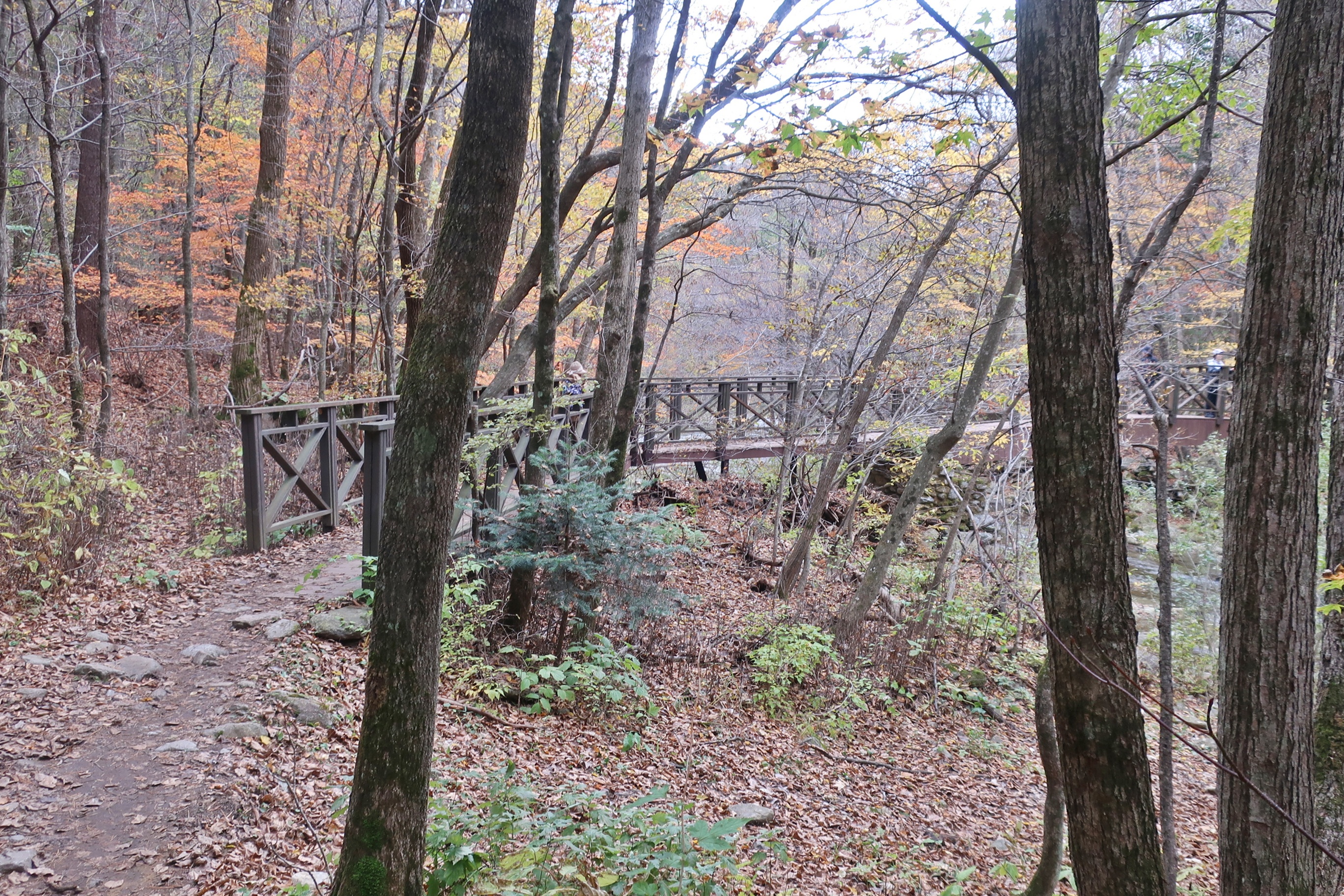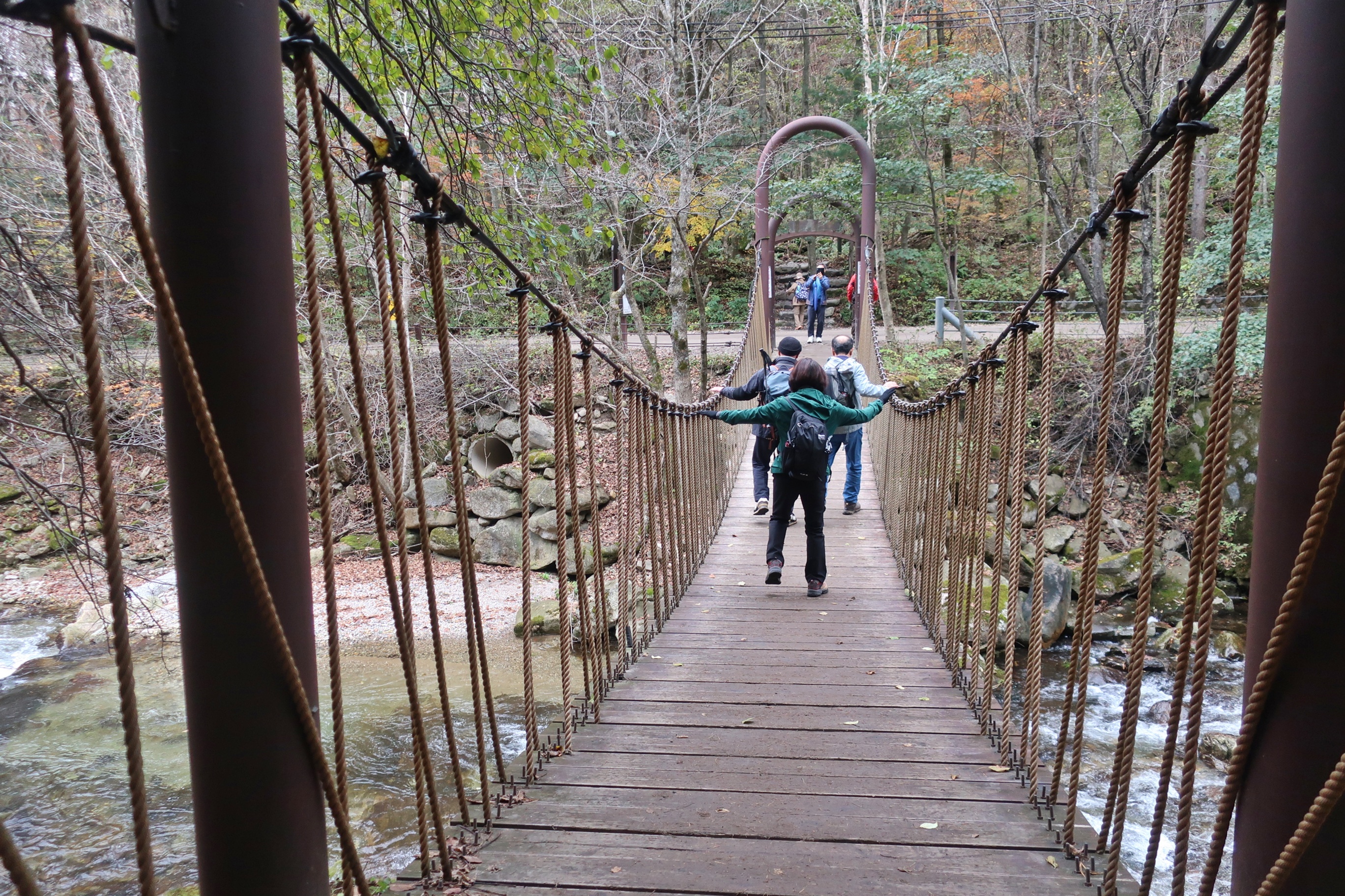 오대천계곡을 건너서고,