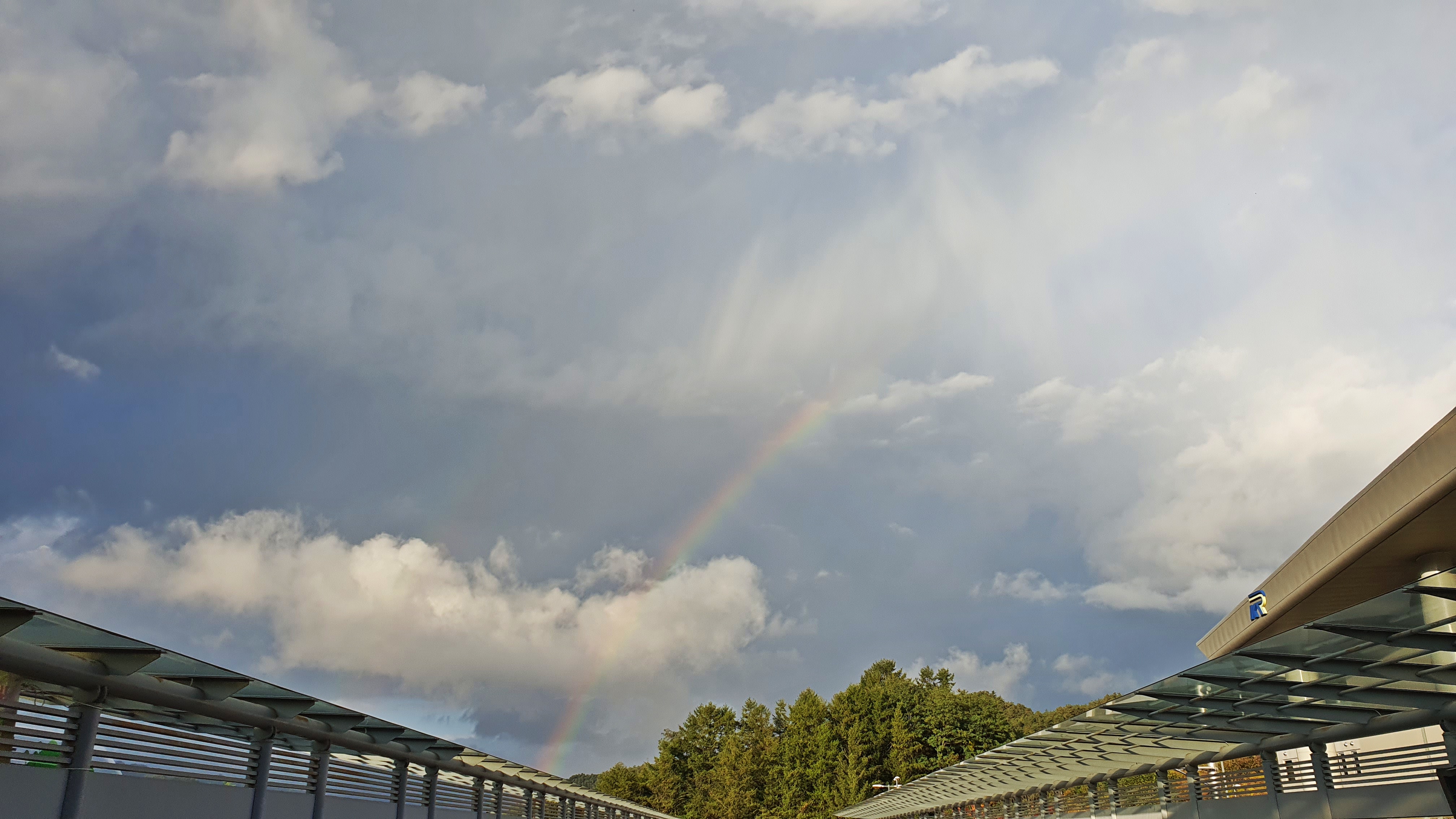 진부역에 내려서니, 흐릿했던 하늘에 귀한 무지개가