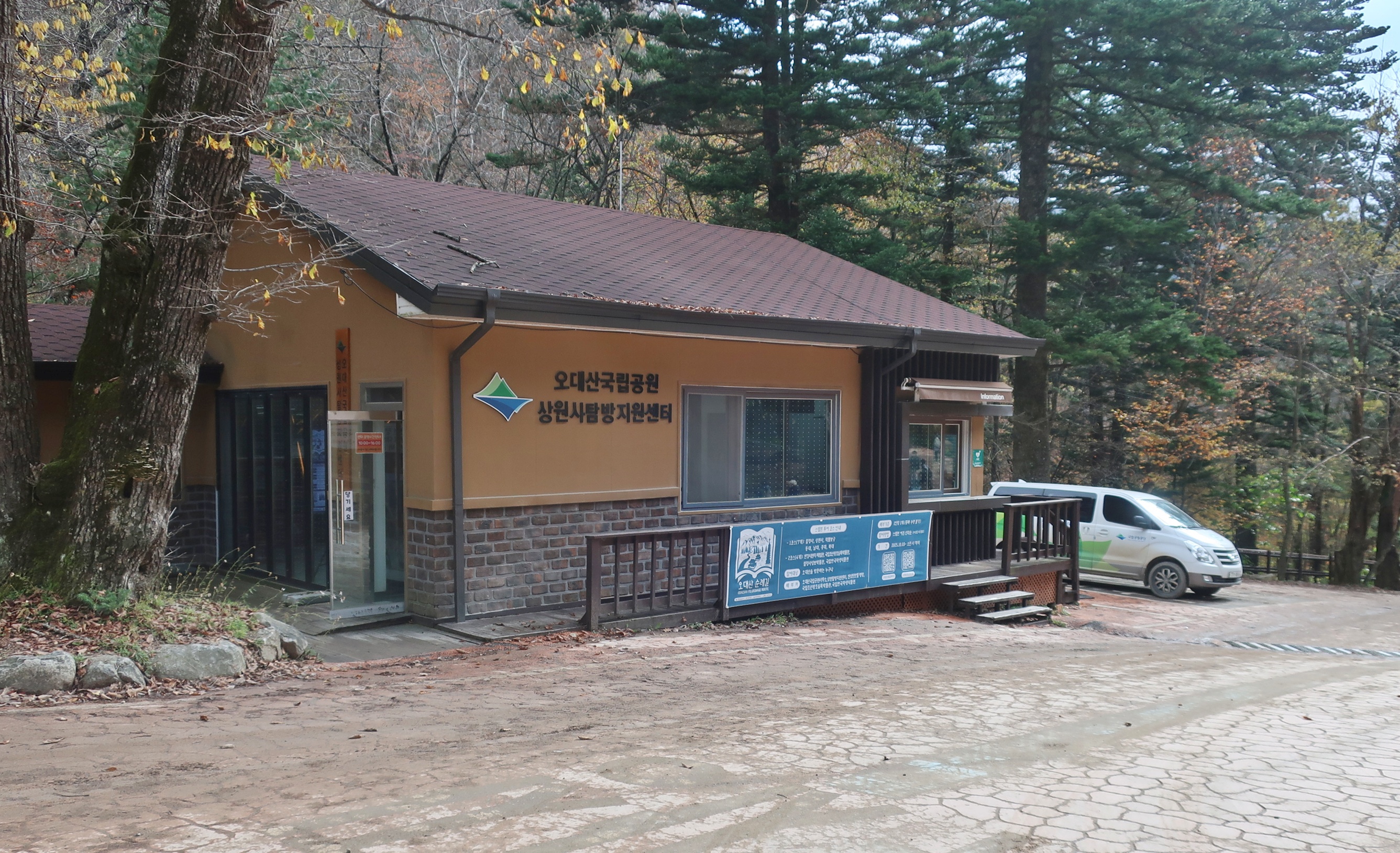 입구 상원사탐방 지원센터에 9시40분에 내려준다.