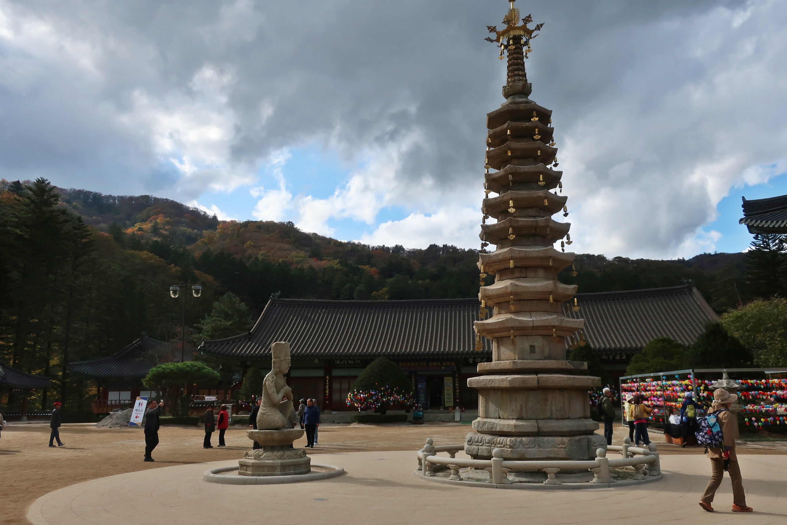 월정사. 구층석탑과 석조보살좌상.