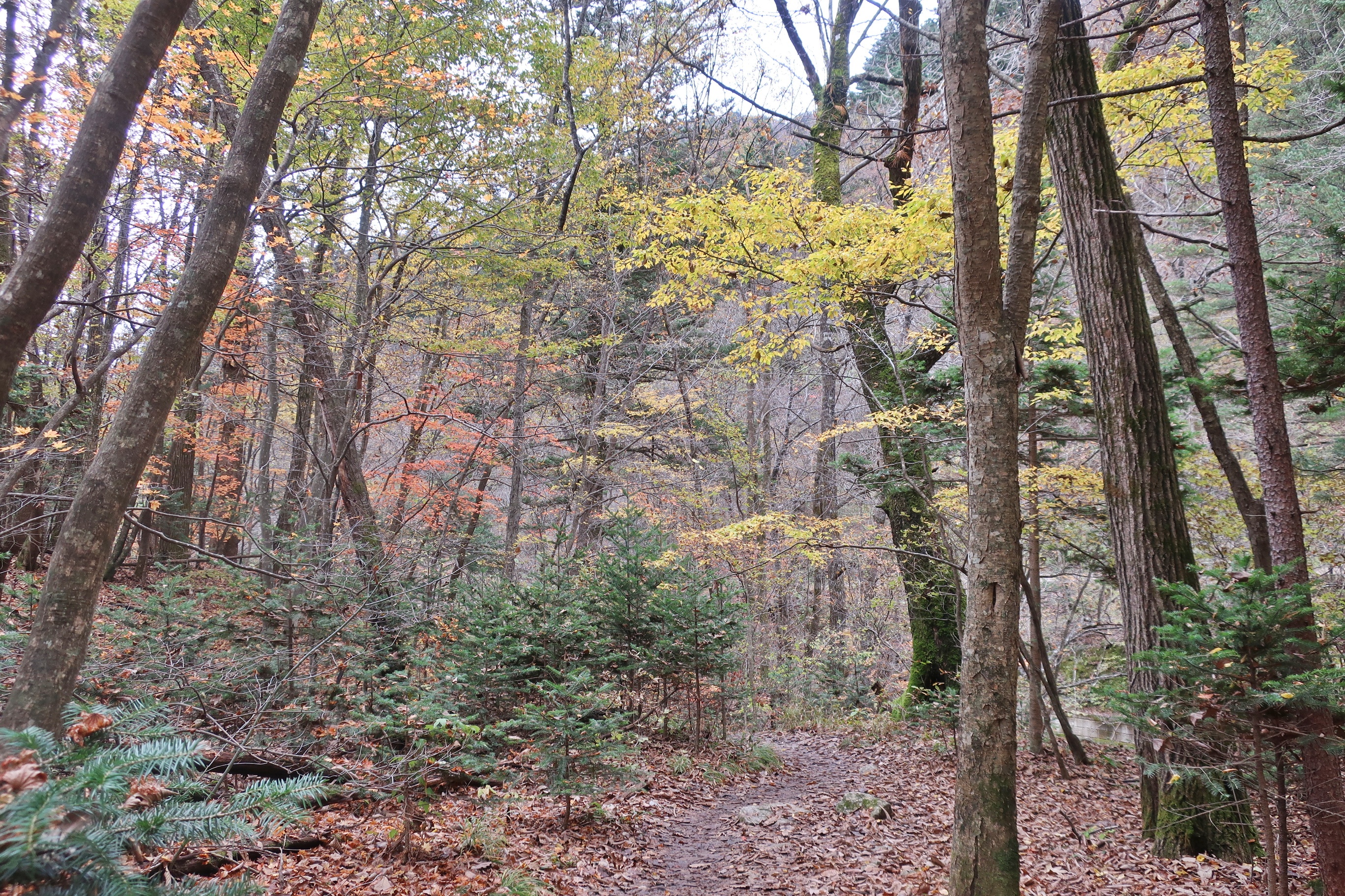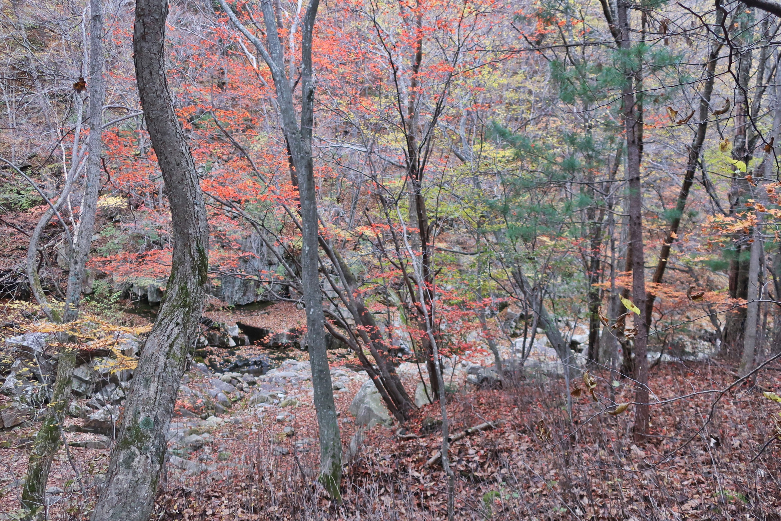 상상했으나, 의외로 단풍은 곱지않았다. 단풍이 아직 이른