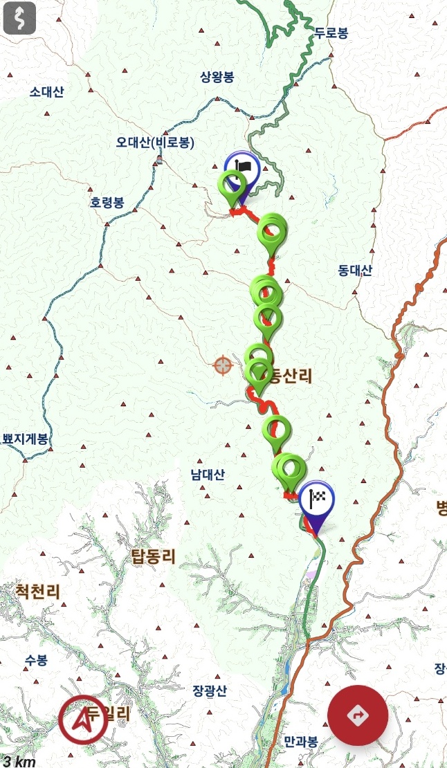 상원사~월정사까지 선제길 진행도.