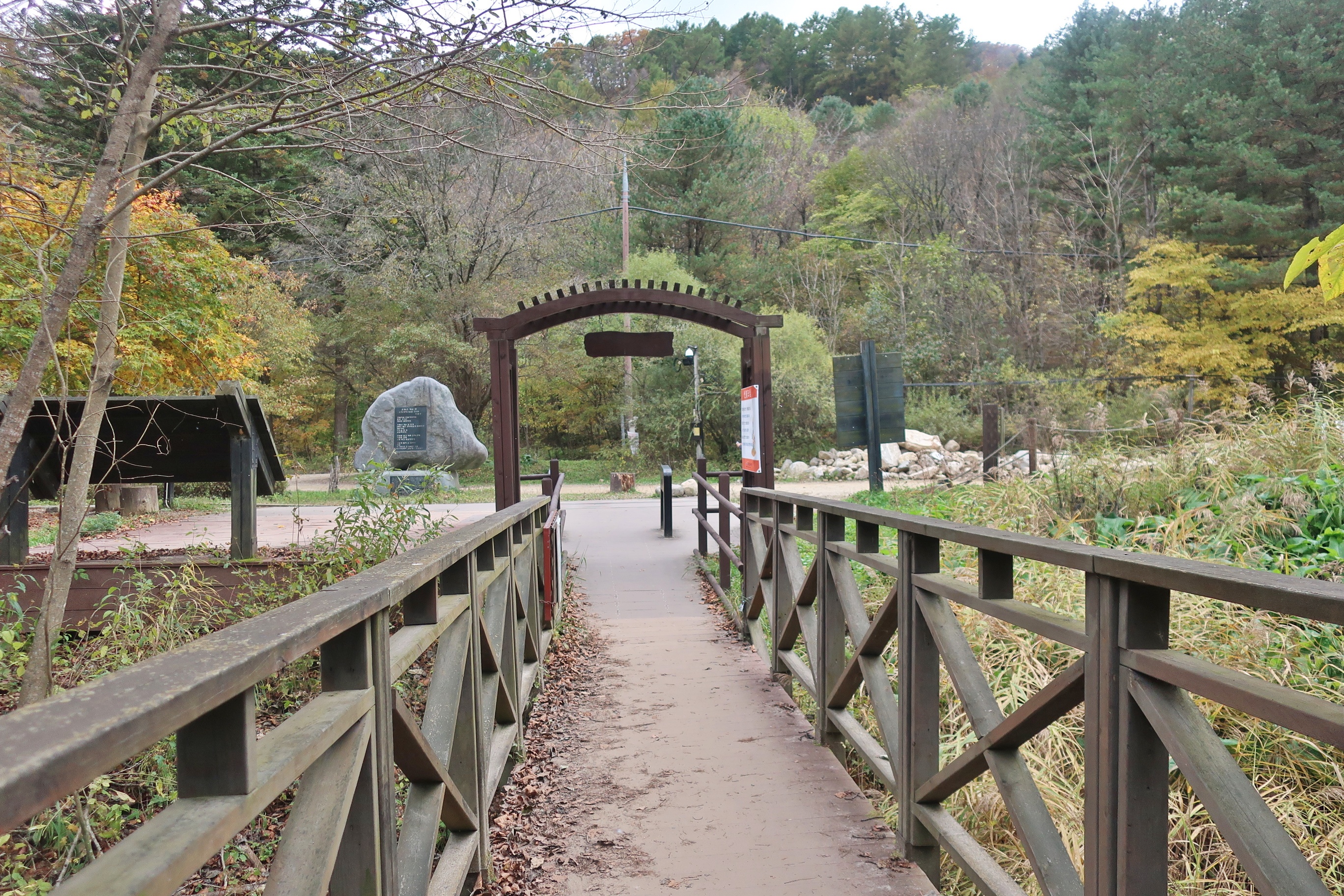 아치형 다리 갈골교로 오대천을 건너선다.