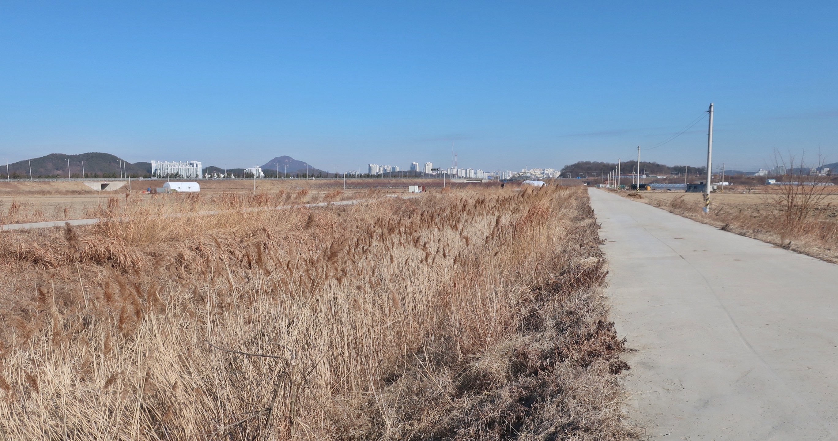 좌측 장곡교가 보여지는 곳에서 우측으로 꺾어 제방