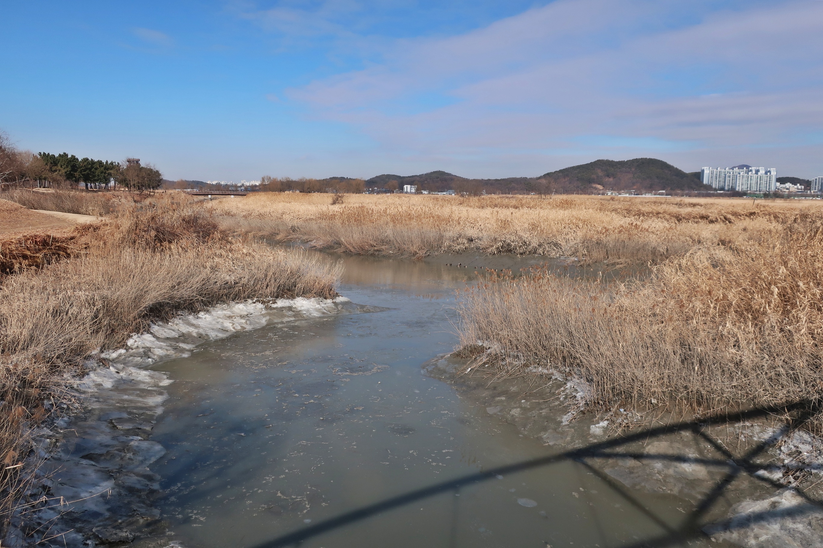 넓게 자리한 갈대밭 사이 미세하게 흐르는